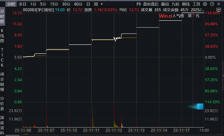 近期,锂电池概念市场活跃,不少山东股也表现非常出色。 11月17日,孚日(002083.SZ)、丰原(002805.SZ)涨停10厘米,分别取得8连弹、3连弹的好成绩。此外,石大精化(603026.SH)、海科信玄(301292.SZ)股价上涨也值得注意。其中,实达盛华股价突破百元,海科新源股价不到两个月飙升345%。孚日股份“八连板” 11月17日,孚日股份“单大小板”收于12.72元/股,日成交量0.65%,成交量达到涨停6.12万手。截至目前,该股已连续八次涨停。孚日股份有限公司成立于1987年,位于潍坊市高密镇。我们是一家集全国性的综合性企业集团l 及国际贸易、房地产、热电、电机等多元化产业,以家纺为主导产业。 2006年在深交所上市。2023年,孚日首次透露了“家纺+新材料”双业务发展战略。其中,家纺业务专注于中高端装饰面料和毛巾系列,新材料业务包括功能涂料业务和锂电池电解液添加剂业务。沃格斯股份证券报告显示,公司正通过子公司沃格斯双威积极发展功能涂料业务。石化能源特种防腐涂料已由中石化、中石油授权供应商进入系统。公司依托子公司孚日新能源,积极开发锂电池电解液添加剂产品。主要生产氯化乙醇优质产品碳酸乙烯酯(CEC)、碳酸亚乙烯酯(VC)电池等一系列上下游动力锂电池产品。目前,我们已与电解液行业多家龙头企业建立了稳定的业务关系。近三年来,孚日营收略有增长,但归属于母公司的净利润大幅增长。财务数据显示,2022年至2024年,孚日将分别获得524.8万元、5300万元。公司实现营业利润4.4亿元、534.6万元,归属母公司净利润分别为2.04亿元、2.87亿元、3.48亿元。 2024年,孚日有限公司的双重战略将获得回报。财报显示,公司国内纺织产业营业利润38.53亿元,同比下降1.67%。涂料行业营业利润1.97亿亿元,比上年增长48.7%。锂电池电解液添加剂业务,2024年,公司全年销售VC产品4304吨,实现销售收入1.77亿元(比上年增长472.49%),实现全年产销同步,成品库存几乎为零。不过,孚日今年前三季度的业绩表现并不理想。公司三季报显示,报告期内,公司销售额同比下降4.45%至38.41亿元,归属于母公司净利润达2.96亿元,同比下降12.05%。其中,参与锂电池电解液添加剂项目的子公司沃格斯新能源一季度至三季度实现营收1.68亿元,净利润亏损约3032万元。恢复的同时锂电池加工业仍面临不确定性,孚日新能源仍面临亏损风险。孚日股份表示,孚日新能源目前没有扩产计划,不会对公司其余业务布局产生实质性影响。 Toyogen股票交易量再创新高。近期,Toyogen的股价也大幅上涨。 11月5日至17日,股价上涨118%。 11月13日、14日、17日触及10厘米涨停价,连续三天封涨停板。值得注意的是,丰源股份17日成交额达到19.53亿元,创历史新高。丰源有限公司位于枣庄市塔尔庄区。成立于2000年8月,2016年在深交所上市。目前主要业务模式为锂电池正极材料,草酸业务为子公司y。从业绩来看,Toyogen股票已经连续两年亏损。财报显示,丰源2023年股票营收为27.77亿元,归属母公司净利润为-3.89亿元。 2024年预计销售额14.9亿元,归属母公司净利润负3.62亿元。今年前三季度,丰原股份仍处于亏损状态。公司三季报显示,报告期内实现营业利润11.72亿元,同比增长19.7%。归属于母公司净利润-3.74亿元,同比下降189.27%。从近期走势来看,东洋股份多次发布利好信息。 10月20日,公司公告称,全资子公司丰源锂能与中能新能源签署为期三年的“磷铁锂电池项目”丰源股份与中能新能源签署合作框架协议,同意自2025年9月至2028年底向中能新能源供应10万吨磷酸铁锂正极材料。丰源股份旗下,公司目前已建成总产能22.5万吨磷酸铁锂产能,总体产能规划30万吨,剩余7.5万吨产能正在建设中。 2025年第四季度,公司产品有效利用率保持在较高水平,受益于下游需求持续增长,公司针对客户差异化产品需求而开发的高密度产品已进入量产阶段,除孚日、丰原外,石台升华、佳生信玄等锂电池股也表现良好,11月12日至14日,实大神华以涨停价收盘。连续三个工作日。17日股价继续上涨,盘中最高达到110.56元。截至收盘,该股上涨6.24%,报收于106.79元。海科鑫源彻底解决了“爆料问题”困境,股价连续10日上涨(11月4日至11月17日)。 17日收盘,股价上涨6.08%,报收于77.12元,较9月23日低点17.33元上涨345%。(大众新闻/经济导报记者贾一航)