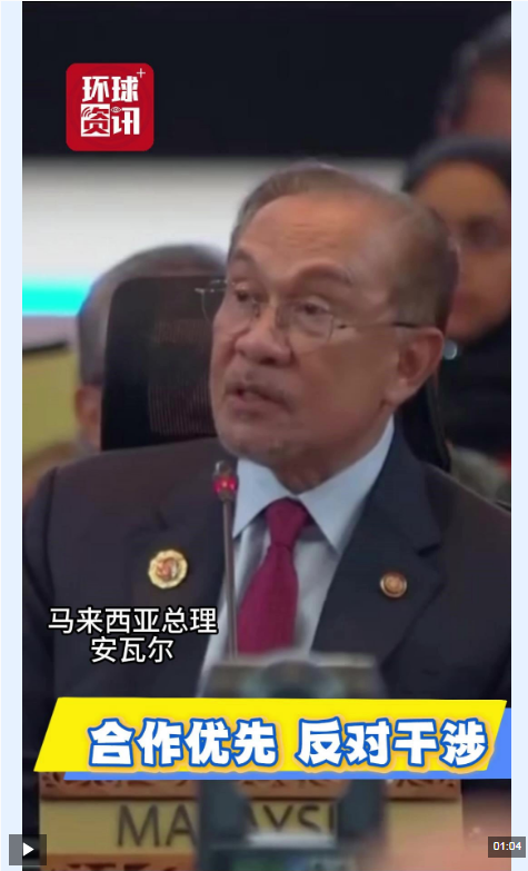 在谈到南海问题时,安瓦尔表示,南海问题应在东盟内部、东盟与地区伙伴之间解决,外部势力不应干涉。